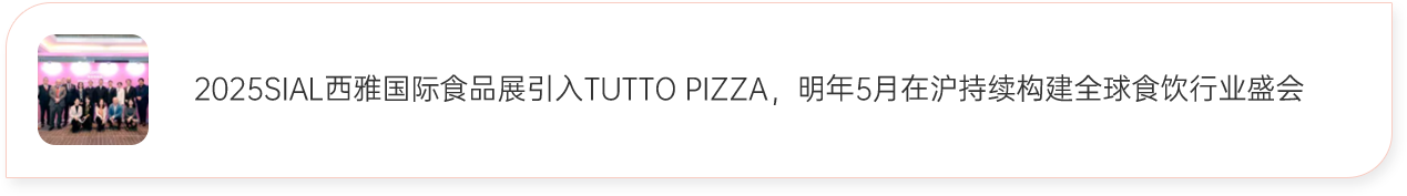 2025 SIAL西雅展(上海)將引進(jìn)Tuttopizza。Tuttopizza首次亮相亞洲,是SIAL西雅展(上海)國(guó)際化道路上的又一里程碑事件。